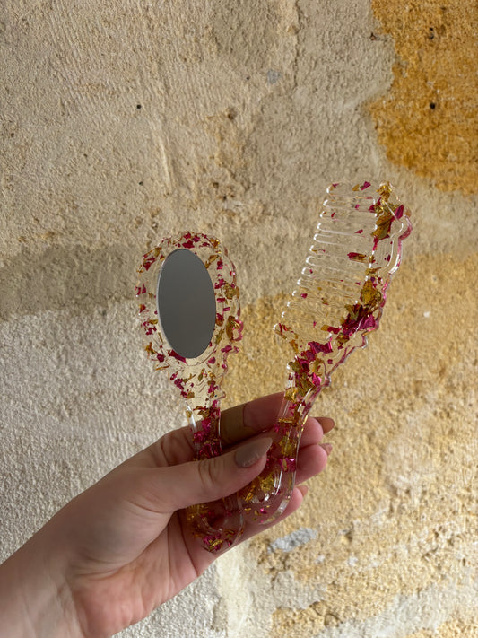 Ensemble Miroir et peigne en résine
